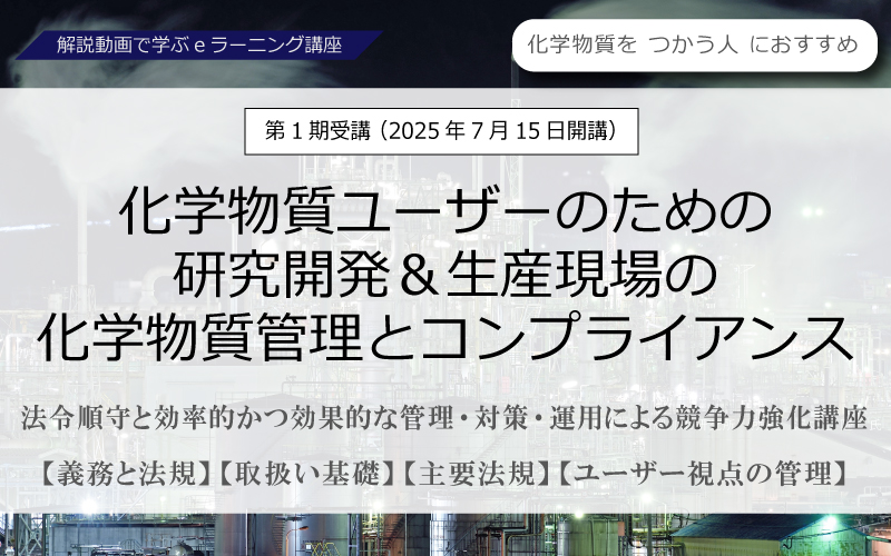 第1期受講(2025年4月16日開講)≪解説動画で学ぶeラーニング講座≫研究・開発・技術者のための化学物質管理とコンプライアンス