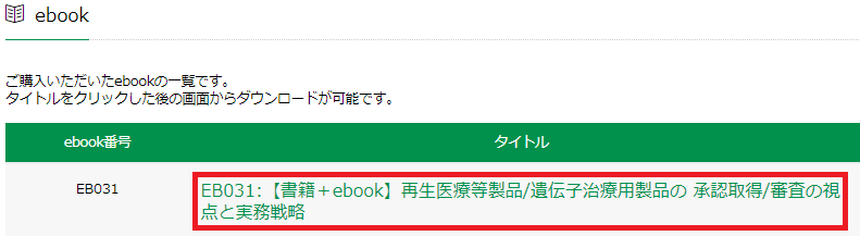4.ご購入いただいたebookのタイトルをクリックしてください。