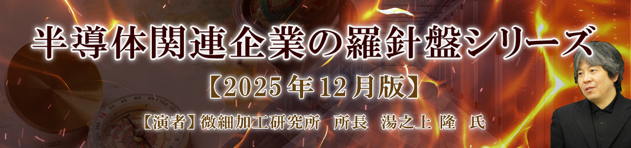 | 会場受講について ・定員になり次第受付終了とさせていただきますので、お早めにお申込みください。 ・講義中の会場でのパソコン使用はキーボードの打音などでご遠慮いただく場合がございます。 半導体関連企業の羅針盤シリーズ【2025年12月版】GAA覇権戦争とAIデータセンター経済圏の衝撃への羅針盤