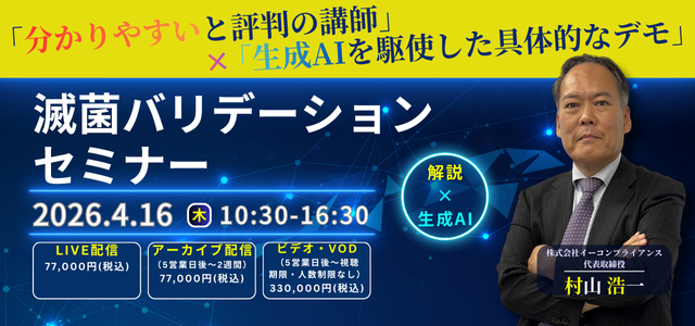 本セミナーは、2026年の最新規制動向に完全対応し、従来の滅菌バリデーションの深い知識・技術に加えて、生成AIを駆使した革新的なアプローチを学べる画期的なプログラムです。